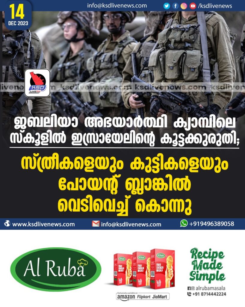 ജബലിയാ അഭയാർത്ഥി ക്യാമ്പിലെ സ്കൂളിൽ ഇസ്രായേലിന്റെ കൂട്ടക്കുരുതി; സ്ത്രീകളെയും കുട്ടികളെയും പോയന്റ് ബ്ലാങ്കില്‍ വെടിവെച്ച്‌ കൊന്നു