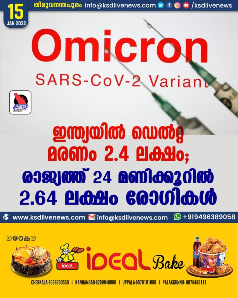 ഇന്ത്യയിൽ ഡെൽറ്റ മരണം 2.4 ലക്ഷം ; രാജ്യത്ത് 24 മണിക്കൂറിൽ 2.64 ലക്ഷം രോഗികള്