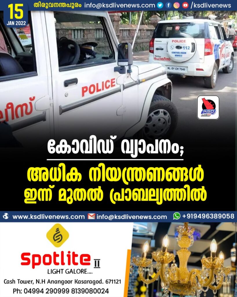 കോവിഡ് വ്യാപനം ; അധിക നിയന്ത്രണങ്ങള് ഇന്ന് മുതല് പ്രാബല്യത്തില്