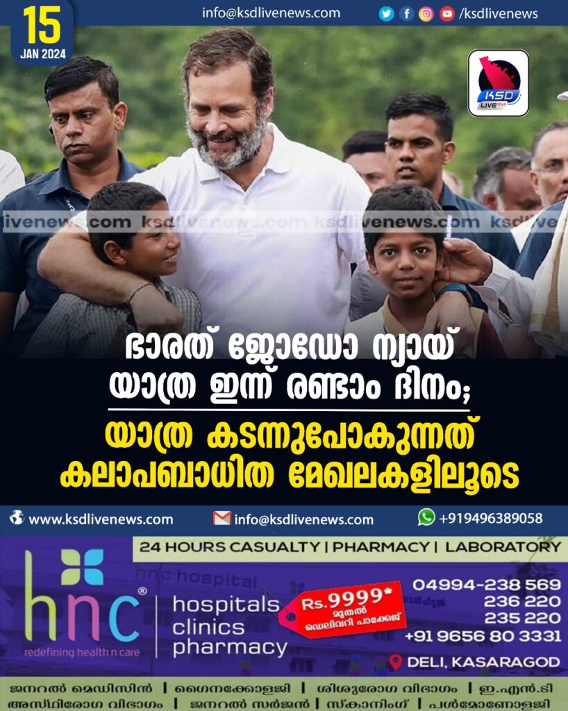 ഭാരത് ജോഡോ ന്യായ് യാത്ര ഇന്ന് രണ്ടാം ദിനം; യാത്ര കടന്നുപോകുന്നത് കലാപബാധിത മേഖലകളിലൂടെ