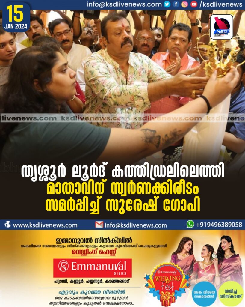 തൃശ്ശൂർ ലൂർദ് കത്തിഡ്രലിലെത്തി മാതാവിന് സ്വർണക്കിരീടം സമർപ്പിച്ച് സുരേഷ് ഗോപി