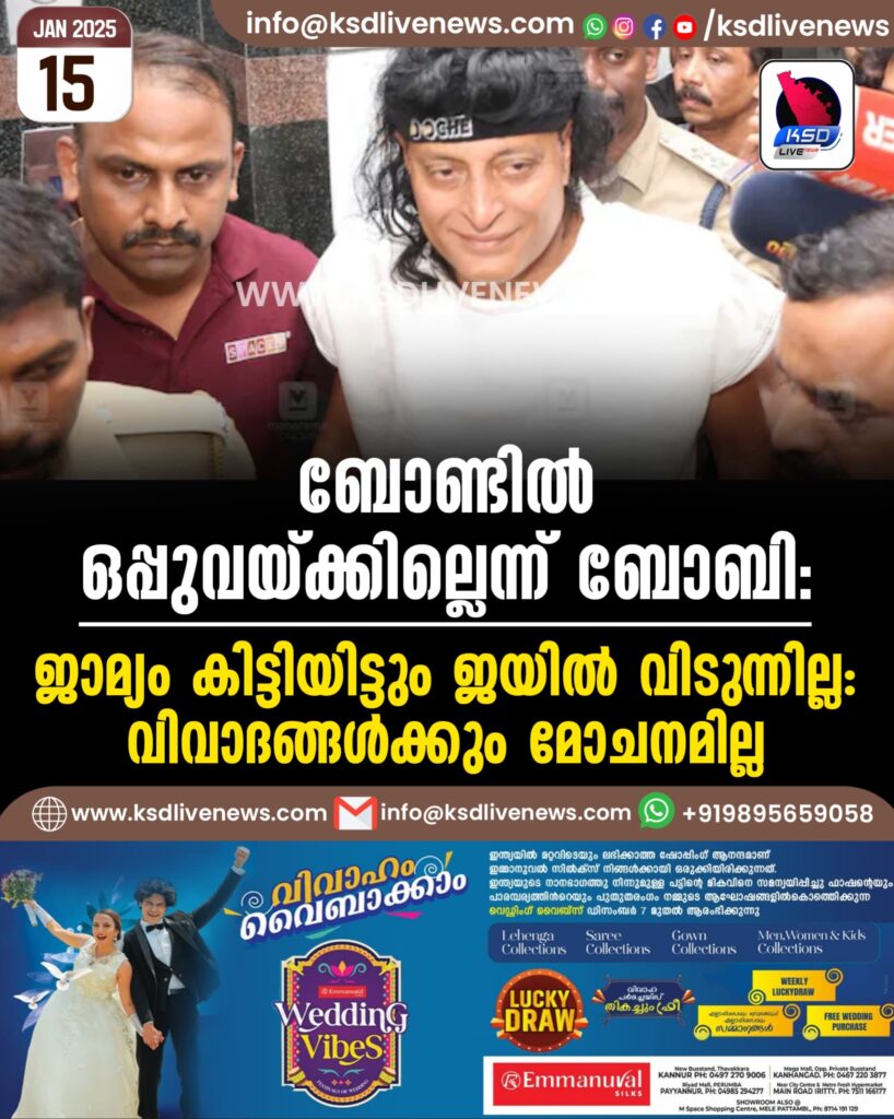 ബോണ്ടിൽ ഒപ്പുവയ്ക്കില്ലെന്ന് ബോബി, ജാമ്യം കിട്ടിയിട്ടും ജയിൽ വിടുന്നില്ല; വിവാദങ്ങൾക്കും മോചനമില്ല