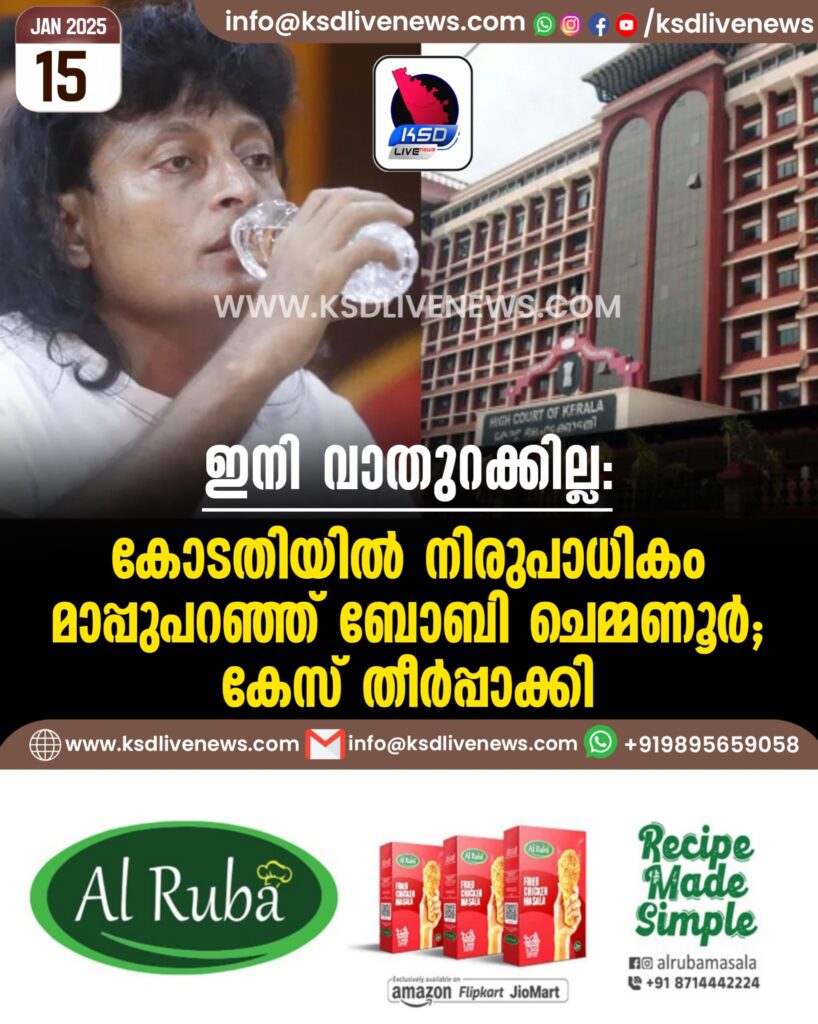 ‘ഇനി വാതുറക്കില്ല!’; കോടതിയിൽ നിരുപാധികം മാപ്പുപറഞ്ഞ് ബോബി ചെമ്മണൂർ; കേസ് തീര്പ്പാക്കി