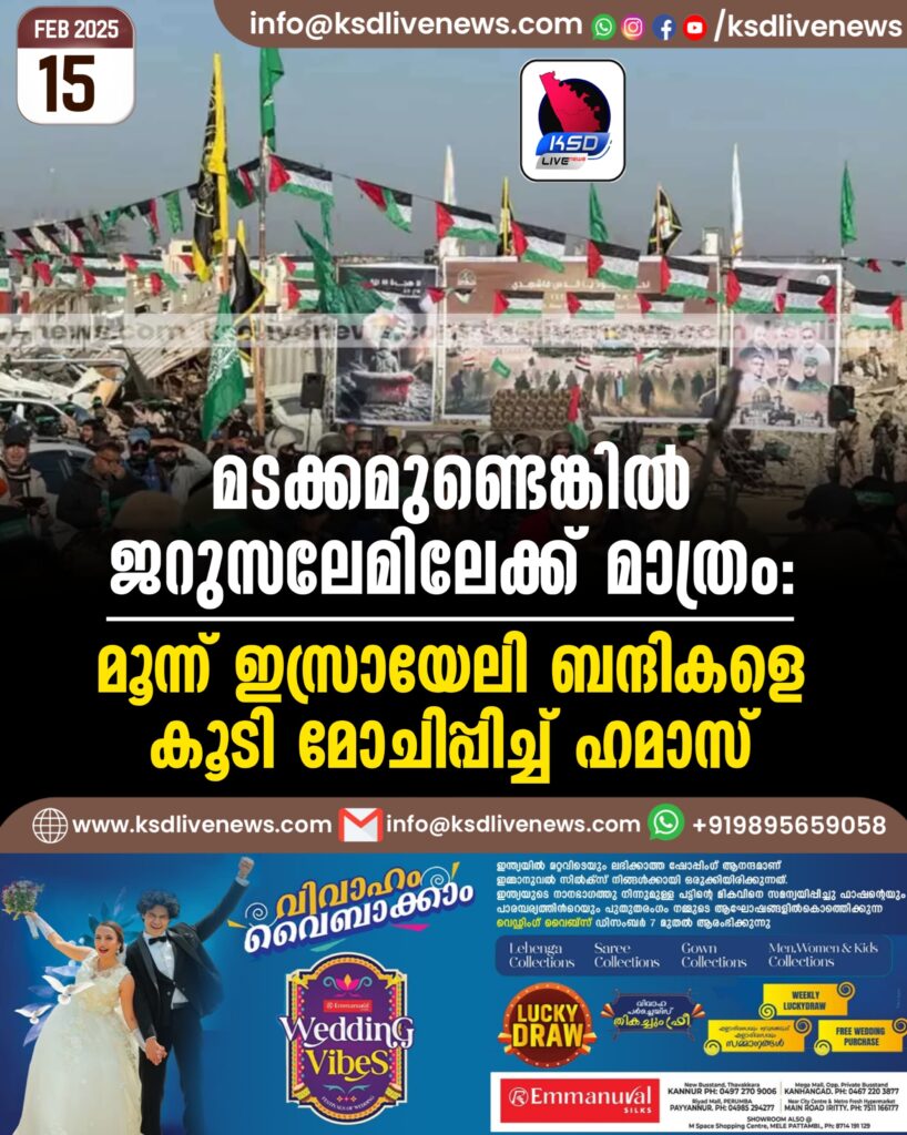 മടക്കമുണ്ടെങ്കിൽ ജറുസലേമിലേക്ക് മാത്രം: മൂന്ന് ഇസ്രായേലി ബന്ദികളെ കൂടി മോചിപ്പിച്ച് ഹമാസ്