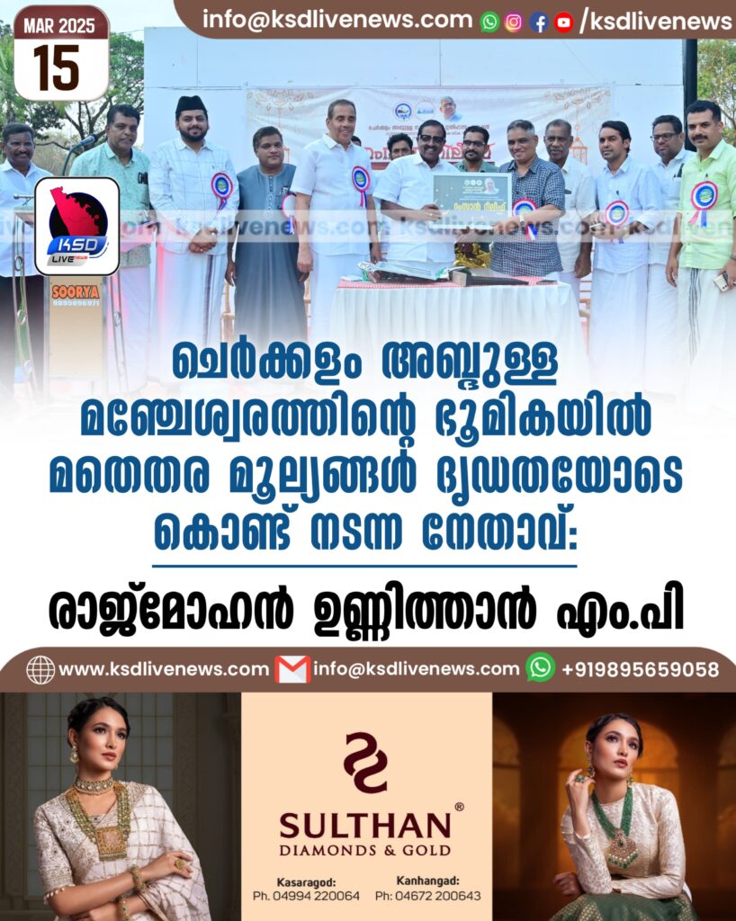 ചെർക്കളം അബ്ദുള്ള മഞ്ചേശ്വരത്തിൻ്റെ ഭൂമികയിൽ മതെതര മൂല്യങ്ങൾ ദൃഡതയോടെ കൊണ്ട് നടന്ന നേതാവ്: രാജ് മോഹൻ ഉണ്ണിത്താൻ എം പി