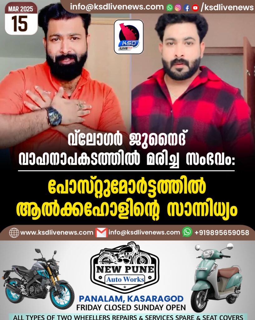 വ്ലോഗര് ജുനൈദ് വാഹനാപകടത്തില് മരിച്ച സംഭവം: പോസ്റ്റുമോര്ട്ടത്തില് ആല്ക്കഹോളിന്റെ സാന്നിധ്യം
