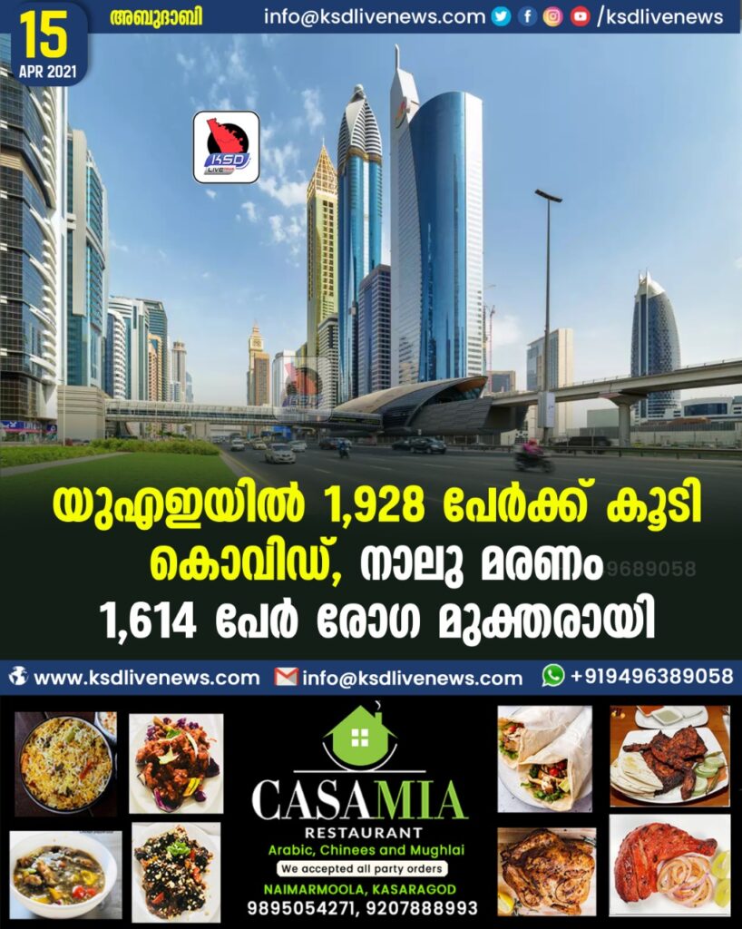 യുഎഇയില്‍ 1,928 പേര്‍ക്ക് കൂടി കൊവിഡ്, നാലു മരണം.16,14 പേർ രോഗ മുക്തരായി