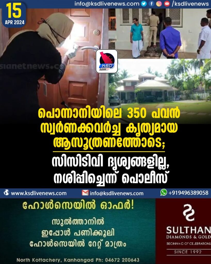 പൊന്നാനിയിലെ 350 പവൻ സ്വര്ണക്കവര്ച്ച കൃത്യമായ ആസൂത്രണത്തോടെ; സിസിടിവി ദൃശ്യങ്ങളില്ല, നശിപ്പിച്ചെന്ന് പൊലീസ്