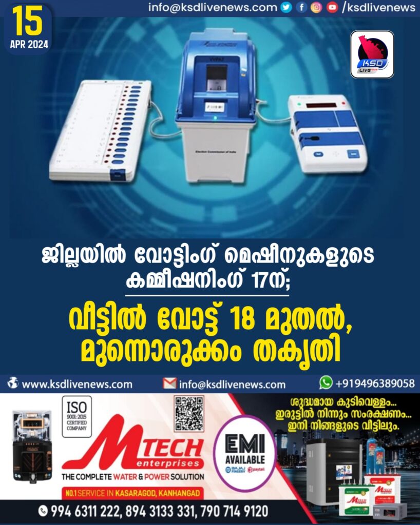 ജില്ലയിൽ വോട്ടിംഗ് മെഷീനുകളുടെ കമ്മീഷനിംഗ് 17ന്; വീട്ടില്‍ വോട്ട് 18മുതല്‍,  മുന്നൊരുക്കം തകൃതി