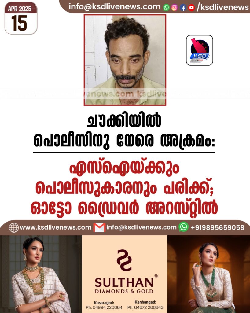 ചൗക്കിയില് പൊലീസിനു നേരെ അക്രമം: എസ്ഐയ്ക്കും പൊലീസുകാരനും പരിക്ക്; ഓട്ടോ ഡ്രൈവര് അറസ്റ്റില്