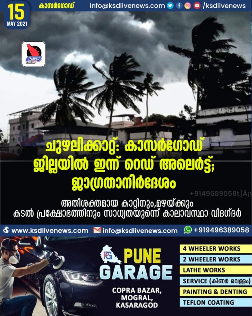 ചുഴലിക്കാറ്റ്: കാസർഗോഡ് ജില്ലയിൽ ഇന്ന് റെഡ് അലെർട്ട് ; ജാഗ്രതാനിർദേശം