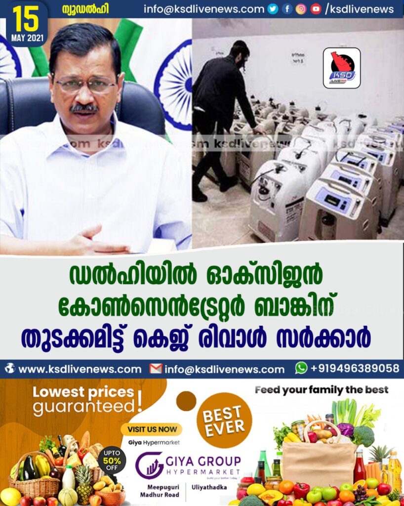 ഡല്ഹിയില് ഒാക്സിജന് കോണ്സെന്ട്രേറ്റര് ബാങ്കിന് തുടക്കമിട്ട് കെജ് രിവാള് സര്ക്കാര്