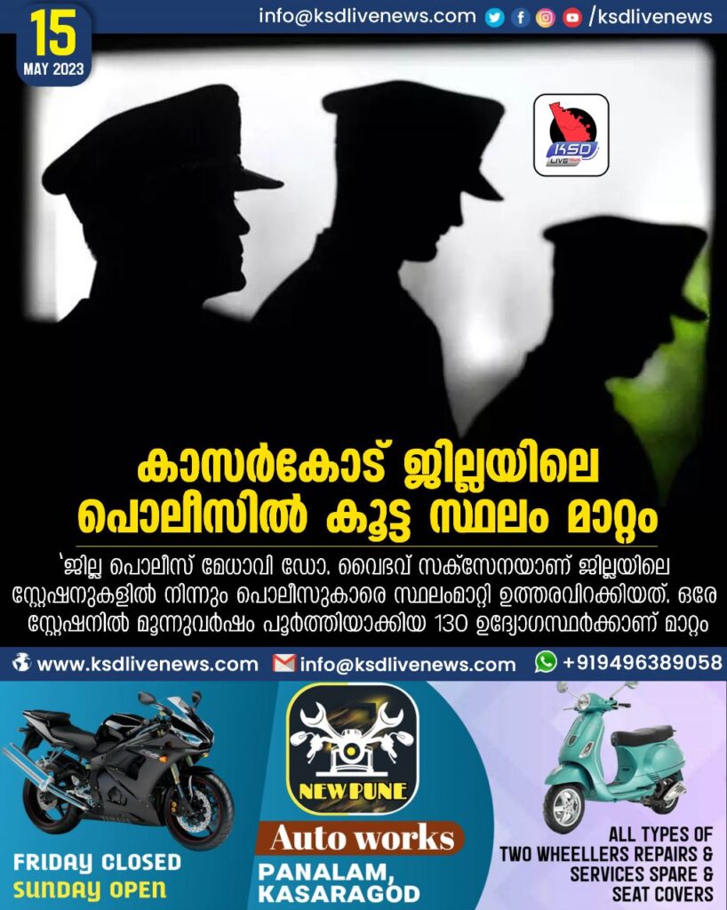 കാസർകോട് ജില്ലയിലെ പൊലീസിൽ കൂട്ട സ്ഥലം മാറ്റം
