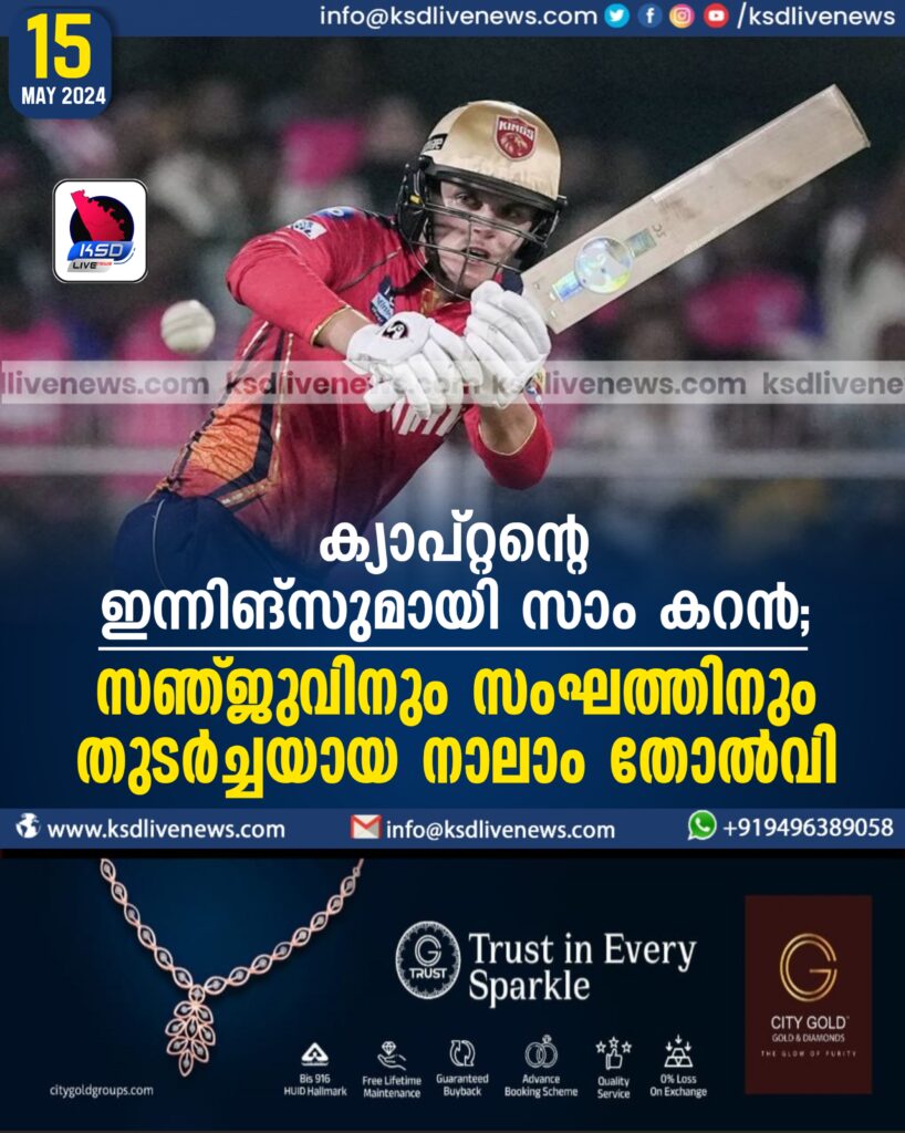 ക്യാപ്റ്റന്റെ ഇന്നിങ്‌സുമായി സാം കറന്‍; സഞ്ജുവിനും സംഘത്തിനും തുടര്‍ച്ചയായ നാലാം തോല്‍വി