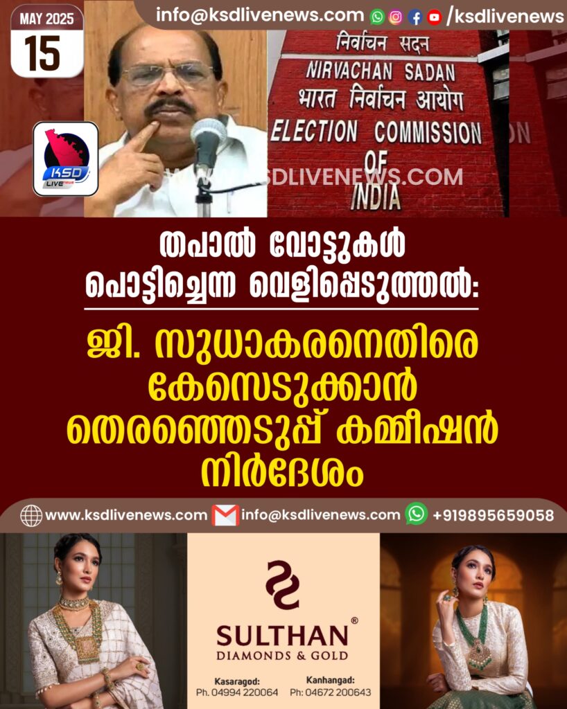 തപാൽ വോട്ടുകൾ പൊട്ടിച്ചെന്ന വെളിപ്പെടുത്തൽ: ജി. സുധാകരനെതിരെ കേസെടുക്കാന് തെരഞ്ഞെടുപ്പ് കമ്മീഷന് നിര്ദേശം