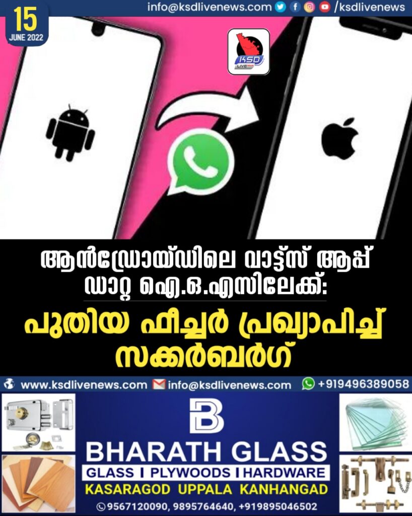 ആന്‍ഡ്രോയ്ഡിലെ വാട്ട്സ് ആപ്പ് ഡാറ്റ ഐ.ഒ.എസിലേക്ക്: പുതിയ ഫീച്ചര്‍ പ്രഖ്യാപിച്ച്‌ സക്കര്‍ബര്‍ഗ്