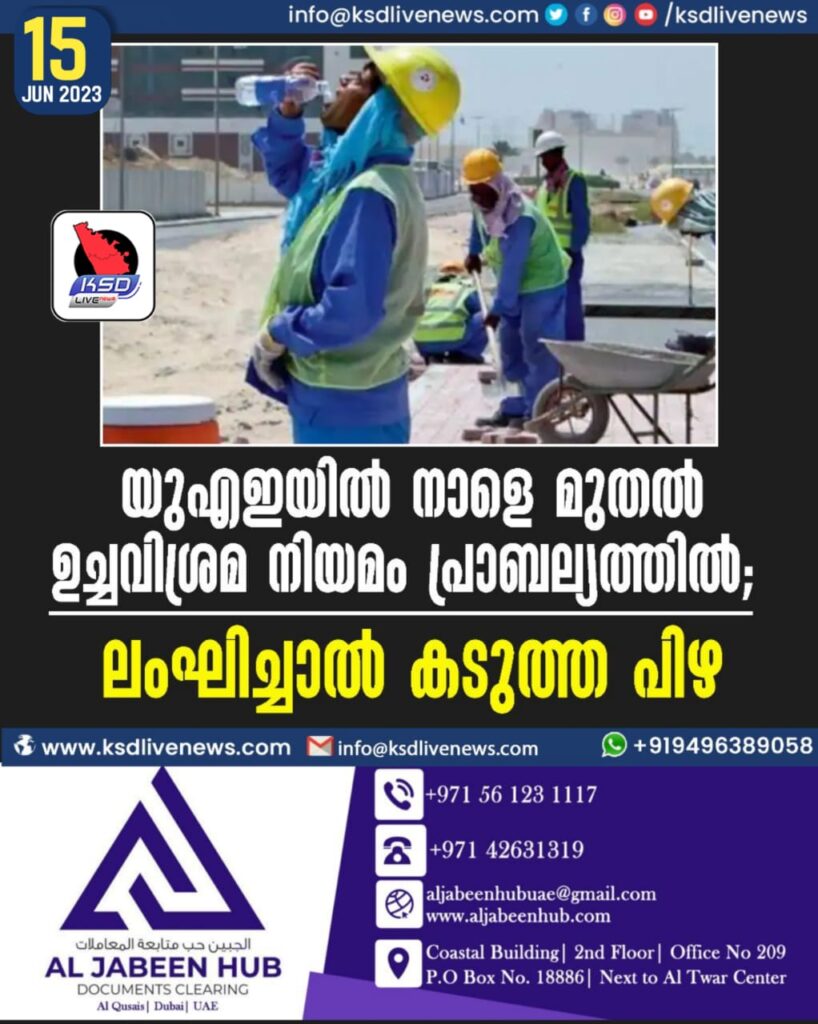 യുഎഇയില് നാളെ മുതല് ഉച്ചവിശ്രമ നിയമം പ്രാബല്യത്തില്; ലംഘിച്ചാല് കടുത്ത പിഴ