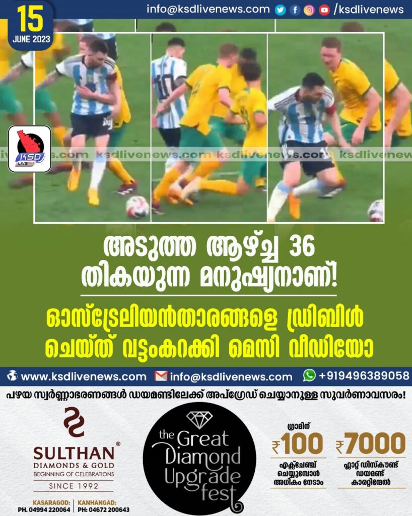 അടുത്ത ആഴ്ച്ച 36 തികയുന്ന മനുഷ്യനാണ്! ഓസ്ട്രേലിയന് താരങ്ങളെ ഡ്രിബിള് ചെയ്ത് വട്ടംകറക്കി മെസി – വീഡിയോ