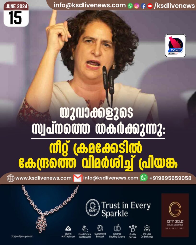 യുവാക്കളുടെ സ്വപ്നത്തെ തകർക്കുന്നു: നീറ്റ് ക്രമക്കേടിൽ കേന്ദ്രത്തെ വിമർശിച്ച് പ്രിയങ്ക