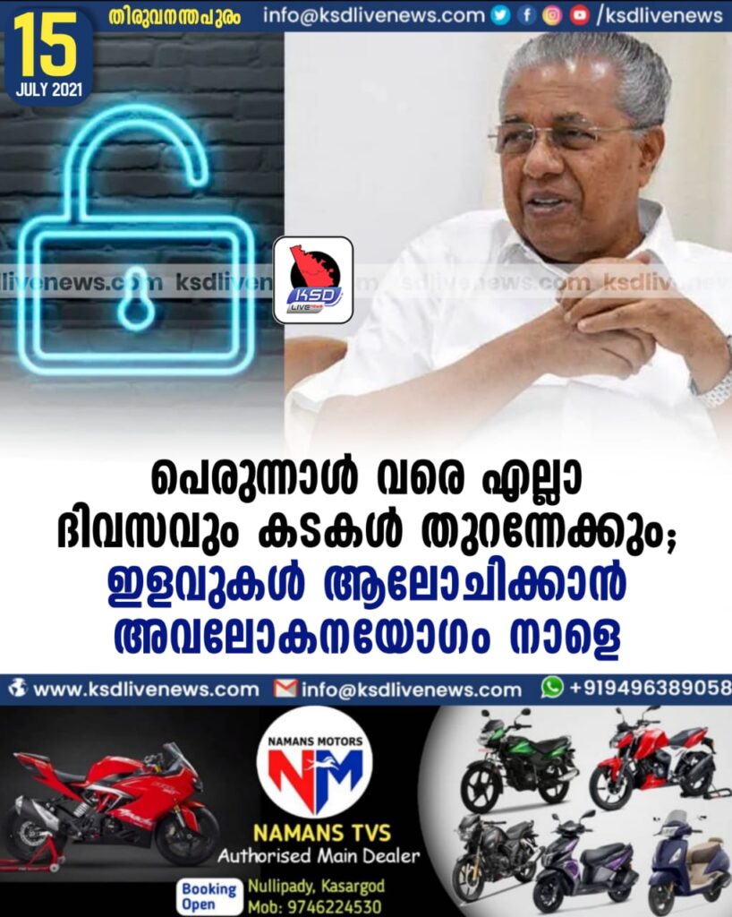 പെരുന്നാള് വരെ എല്ലാ ദിവസവും കടകള് തുറന്നേക്കും; ഇളവുകള് ആലോചിക്കാന് അവലോകനയോഗം നാളെ