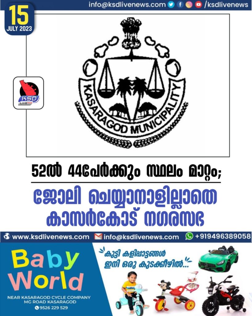 52ൽ 44പേർക്കും സ്ഥലം മാറ്റം; ജോലി ചെയ്യാനാളില്ലാതെ കാസർകോട് നഗരസഭ