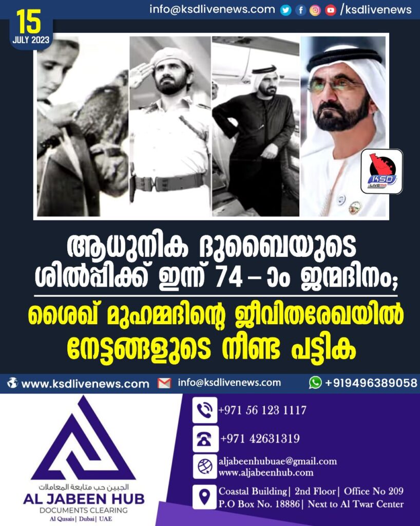 ആധുനിക ദുബൈയുടെ ശില്‍പ്പി’ക്ക് ഇന്ന് 74-ാം ജന്മദിനം; ശൈഖ് മുഹമ്മദിന്റെ ജീവിതരേഖയിൽ നേട്ടങ്ങളുടെ നീണ്ട പട്ടിക