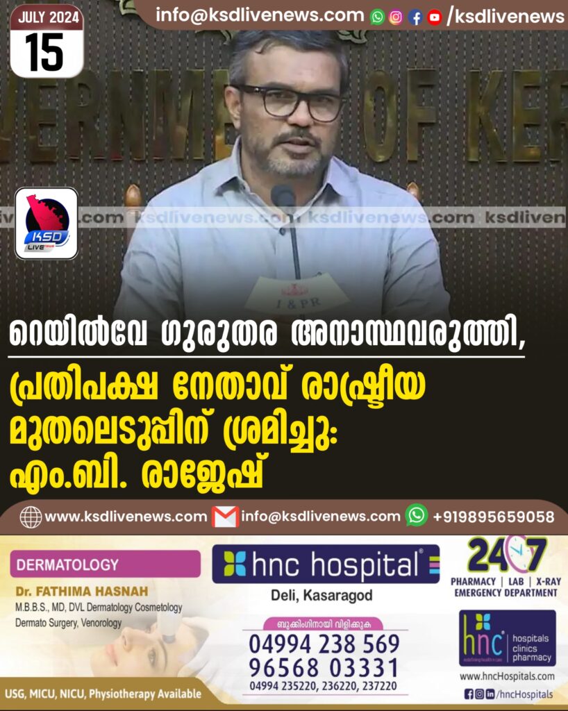 റെയിൽവേ ഗുരുതര അനാസ്ഥവരുത്തി, പ്രതിപക്ഷ നേതാവ് രാഷ്ട്രീയ മുതലെടുപ്പിന് ശ്രമിച്ചു- എം.ബി. രാജേഷ്