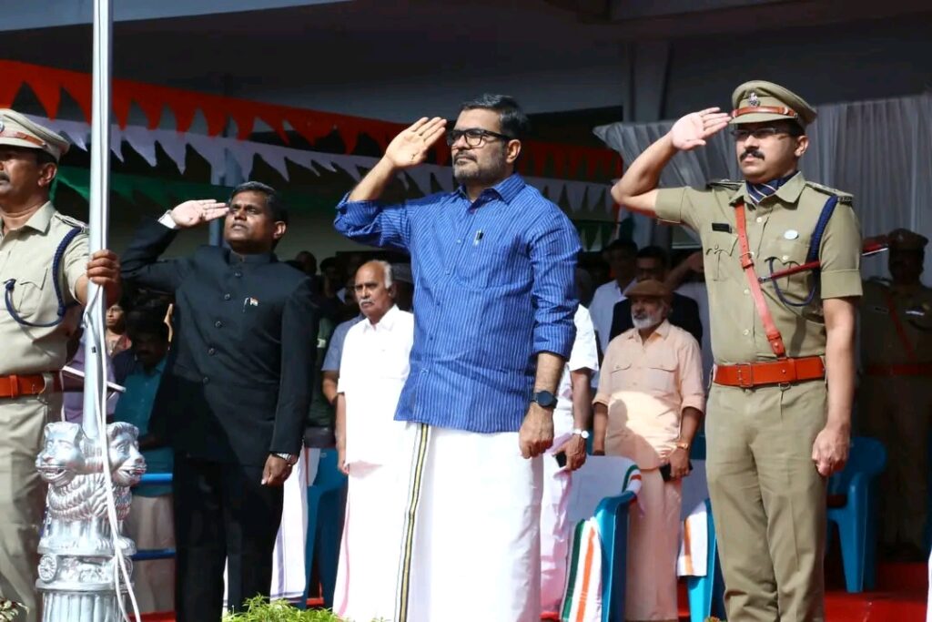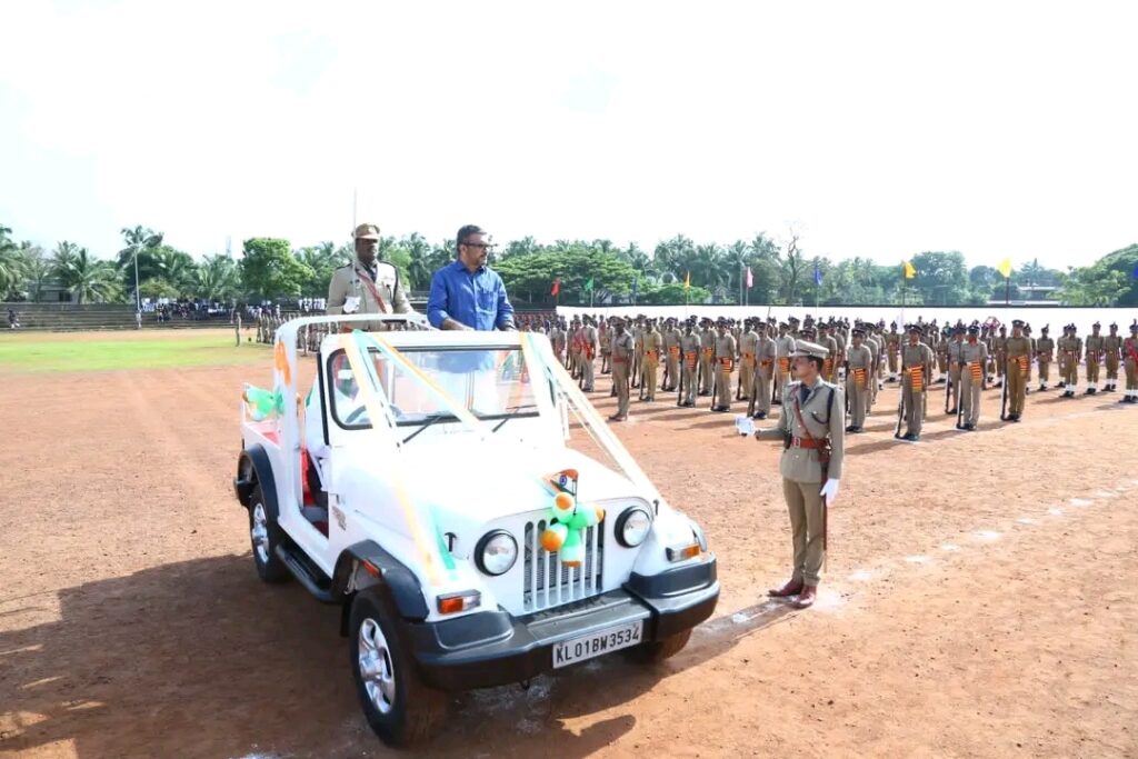 ജില്ലാ കലക്ടർ കെ ഇമ്പശേഖർ ജില്ലാ പോലീസ് മേധാവി ഡോ വൈഭവ് സക്സേന പരേഡിനെ സല്യൂട്ട് ചെയ്തു