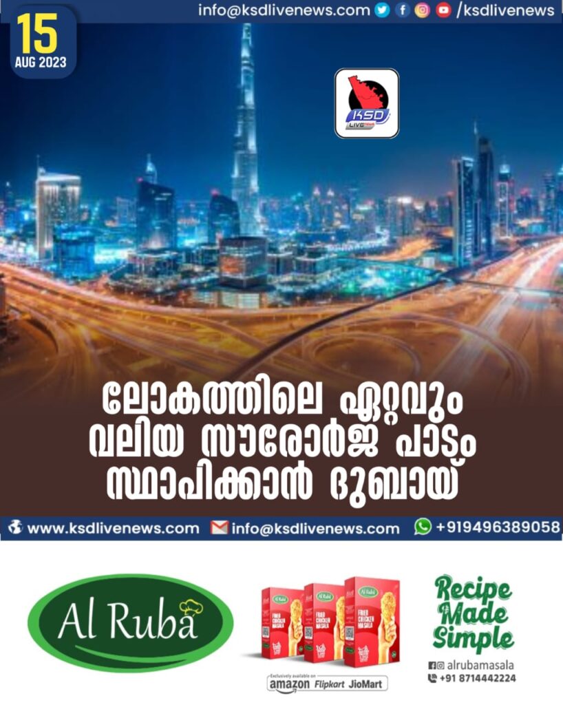ലോകത്തിലെ ഏറ്റവും വലിയ സൗരോർജ പാടം സ്ഥാപിക്കാൻ ദുബായ്
