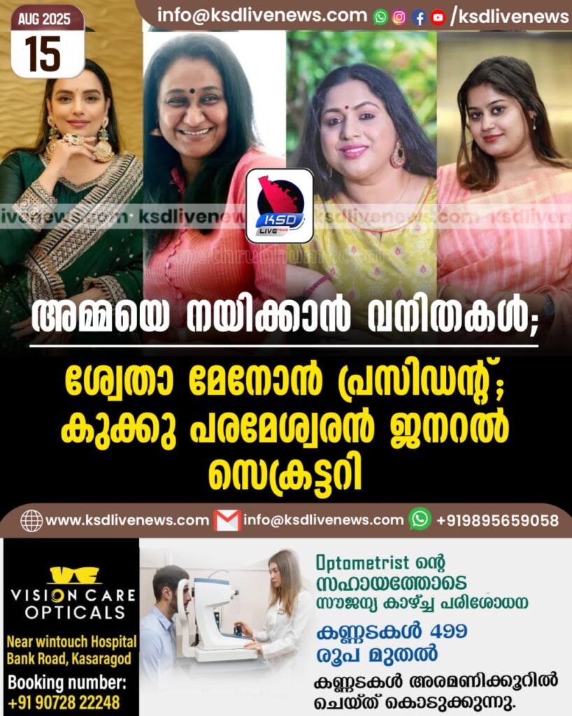 ‘അമ്മയെ’ നയിക്കാൻ വനിതകൾ; ശ്വേതാ മേനോൻ പ്രസിഡന്റ്; കുക്കു പരമേശ്വരൻ ജനറൽ സെക്രട്ടറി