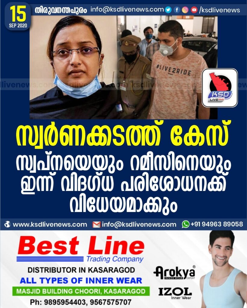 സ്വർണക്കടത്ത് കേസ് : സ്വപ്നയെയും റമീസിനെയും ഇന്ന് വിദഗ്ധ പരിശോധനക്ക് വിധേയമാക്കും
