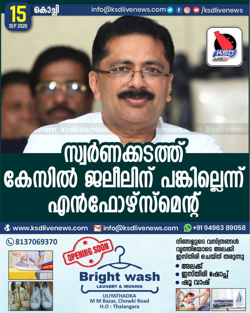 സ്വര്ണക്കടത്ത് കേസില് ജലീലിന് പങ്കില്ലെന്ന് എന്ഫോഴ്സ്മെന്റ്