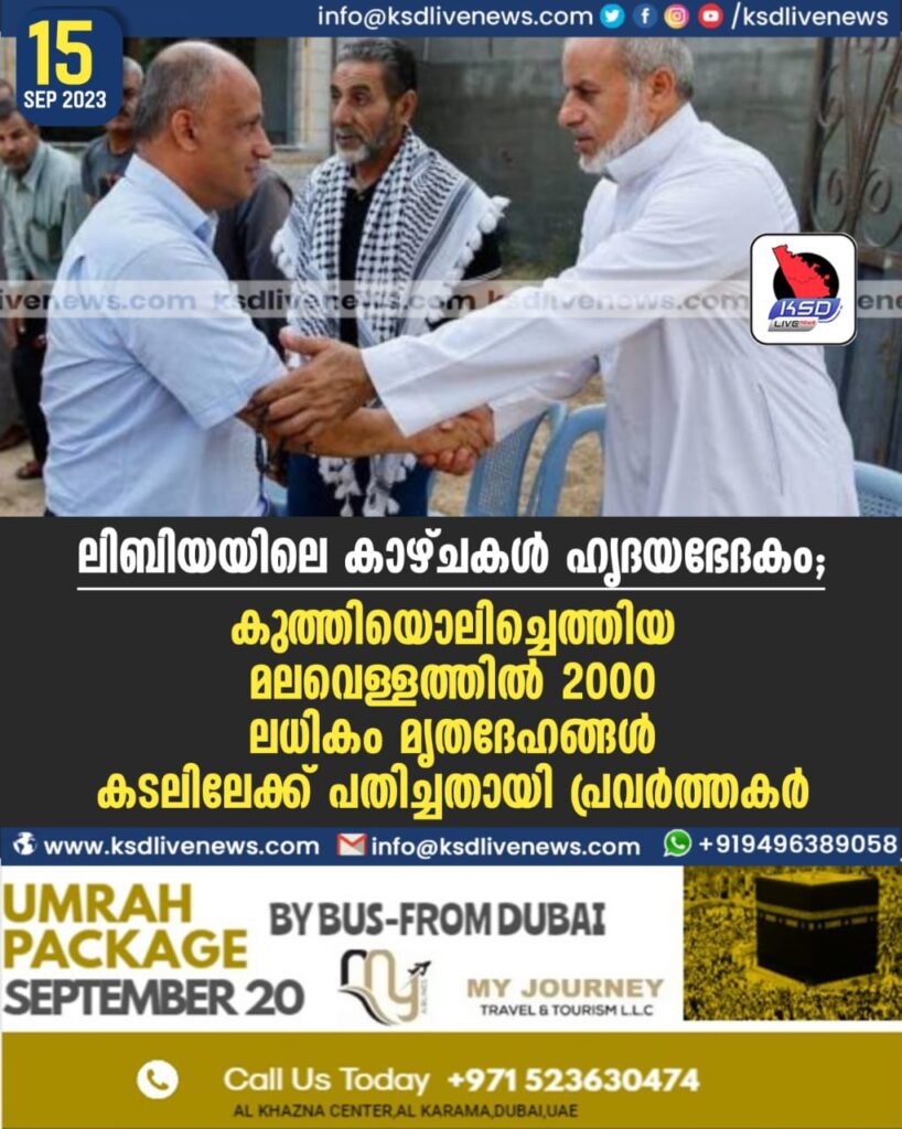 ലിബിയയിലെ കാഴ്ചകൾ ഹൃദയഭേദകം; കുത്തിയൊലിച്ചെത്തിയ മലവെള്ളത്തിൽ 2000 ലധികം മൃതദേഹങ്ങൾ കടലിലേക്ക് പതിച്ചതായി പ്രവർത്തകർ