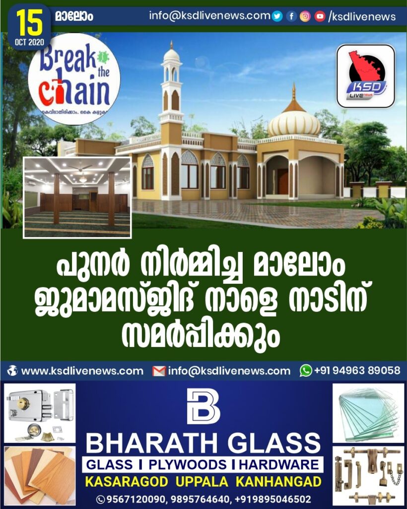 പുനർ നിർമ്മിച്ച മാലോം ജുമാമസ്ജിദ് നാളെ നാടിന് സമർപ്പിക്കും