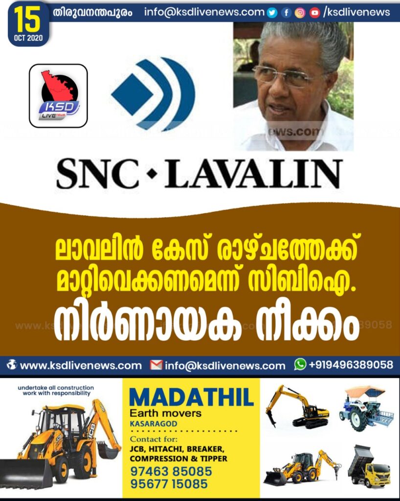 ലാവലിൻ കേസ് രണ്ടാഴ്ചത്തേക്ക് മാറ്റിവെക്കണമെന്ന് സിബിഐ . നിർണായക നീക്കം
