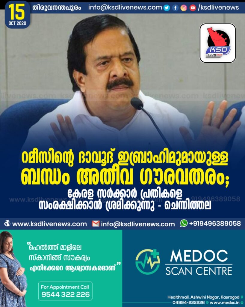 റമീസിന്റെ ദാവൂദ് ഇബ്രാഹിമുമായുള്ള ബന്ധം അതീവ ഗൗരവതരം ; കേരള സർക്കാർ പ്രതികളെ സംരക്ഷിക്കാൻ ശ്രമിക്കുന്നു – ചെന്നിത്തല
