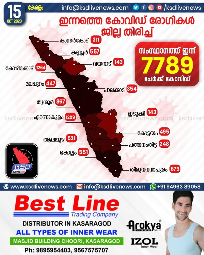 സംസ്ഥാനത്ത് ഇന്ന് കോവിഡ് പോസിറ്റീവായരുടെ ജില്ല തിരിച്ചുള്ള സ്ഥിതി വിവരങ്ങൾ