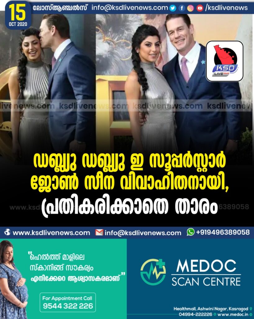 ഡബ്ല്യു ഡബ്ല്യു ഇ സൂപ്പർസ്റ്റാർ ജോൺ സീന വിവാഹിതനായി , പ്രതികരിക്കാതെ താരം