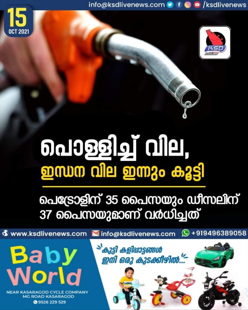 പൊള്ളിച്ച് വില, ഇന്ധന വില ഇന്നും കൂട്ടി