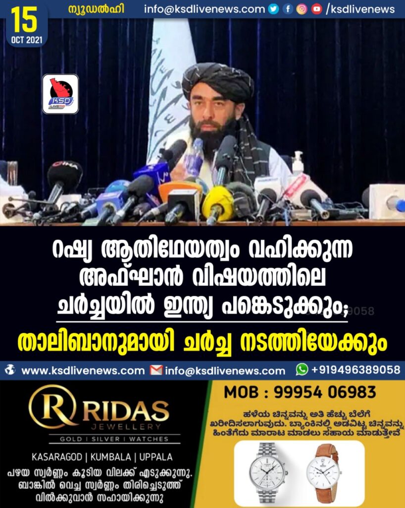 റഷ്യ ആതിഥേയത്വം വഹിക്കുന്ന അഫ്ഘാന്‍ വിഷയത്തിലെ ചര്‍ച്ചയില്‍ ഇന്ത്യ പങ്കെടുക്കും, താലിബാനുമായി ചര്‍ച്ച നടത്തിയേക്കും