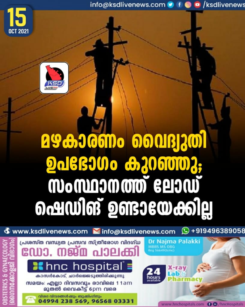 മഴകാരണം വൈദ്യുതി ഉപഭോഗം കുറഞ്ഞു; സംസ്ഥാനത്ത് ലോഡ് ഷെഡിങ് ഉണ്ടായേക്കില്ല
