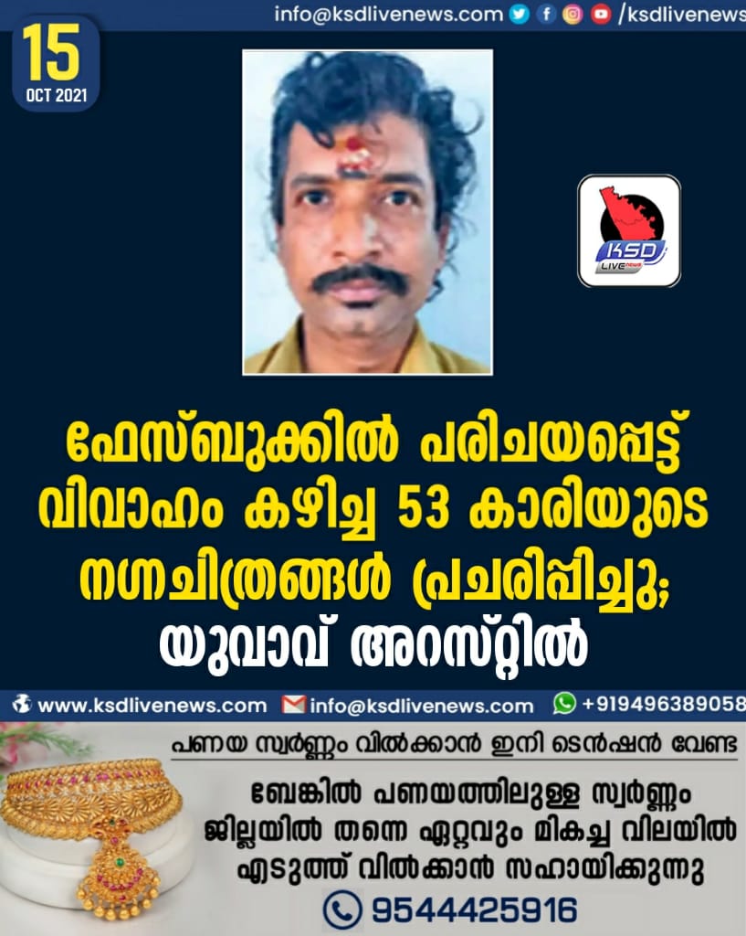 ഫേസ്ബുക്കില്‍ പരിചയപ്പെട്ട് വിവാഹം കഴിച്ച 53കാരിയുടെ നഗ്നചിത്രങ്ങള്‍ പ്രചരിപ്പിച്ചു; യുവാവ് അറസ്റ്റില്‍
