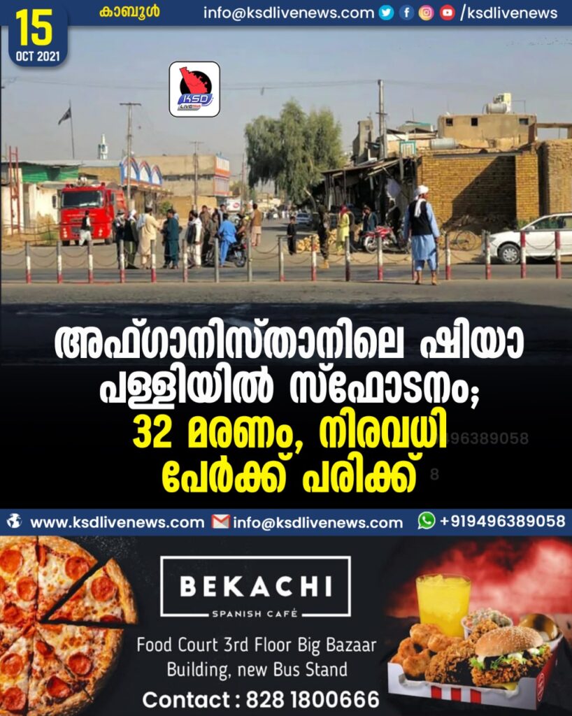 അഫ്ഗാനിസ്താനിലെ ഷിയാ പള്ളിയില് സ്ഫോടനം; 32 മരണം, നിരവധി പേർക്ക് പരിക്ക്