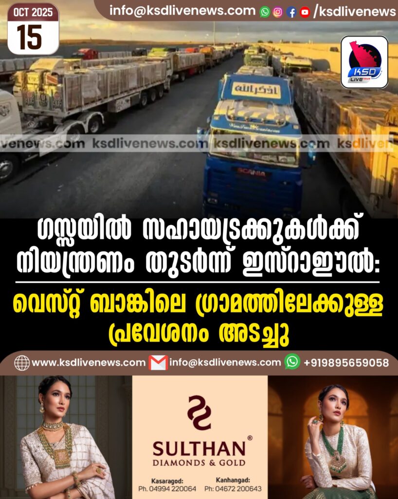 ഗസ്സയില് സഹായട്രക്കുകള്ക്ക് നിയന്ത്രണം തുടര്ന്ന് ഇസ്റാഈല്; വെസ്റ്റ് ബാങ്കിലെ ഗ്രാമത്തിലേക്കുള്ള പ്രവേശനം അടച്ചു