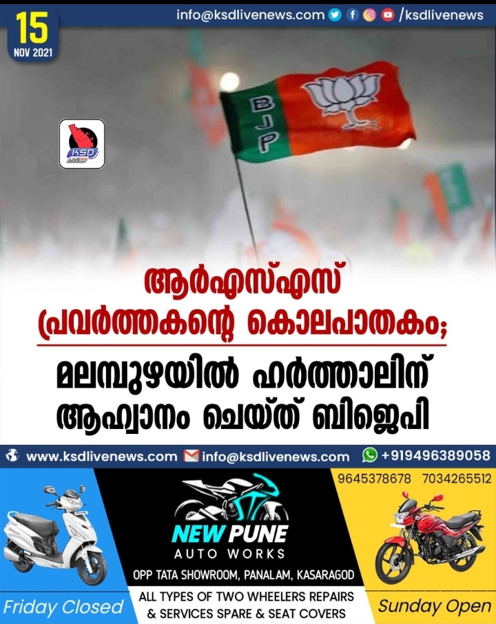 ആര്എസ്എസ് പ്രവര്ത്തകന്റെ കൊലപാതകം; മലമ്പുഴയില് ഹര്ത്താലിന് ആഹ്വാനം ചെയ്ത് ബിജെപി