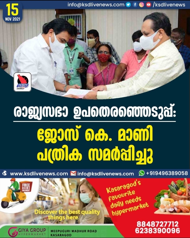 രാജ്യസഭാ ഉപതെരഞ്ഞെടുപ്പ്: ജോസ് കെ മാണി പത്രിക സമര്പ്പിച്ചു