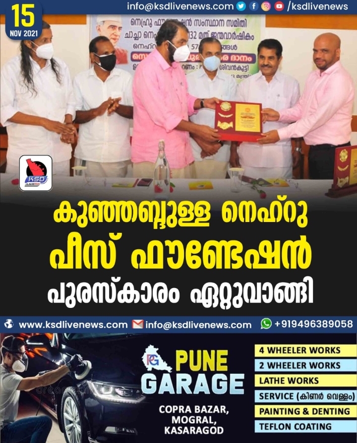 കുഞ്ഞബ്ദുള്ള നെഹ്റു പീസ് ഫൗണ്ടേഷൻ പുരസ്കാരം ഏറ്റുവാങ്ങി