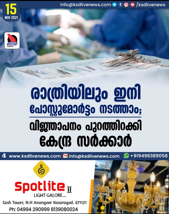 രാത്രിയിലും ഇനി പോസ്റ്റുമോര്‍ട്ടം നടത്താം; വിജ്ഞാപനം പുറത്തിറക്കി കേന്ദ്ര സര്‍ക്കാര്‍