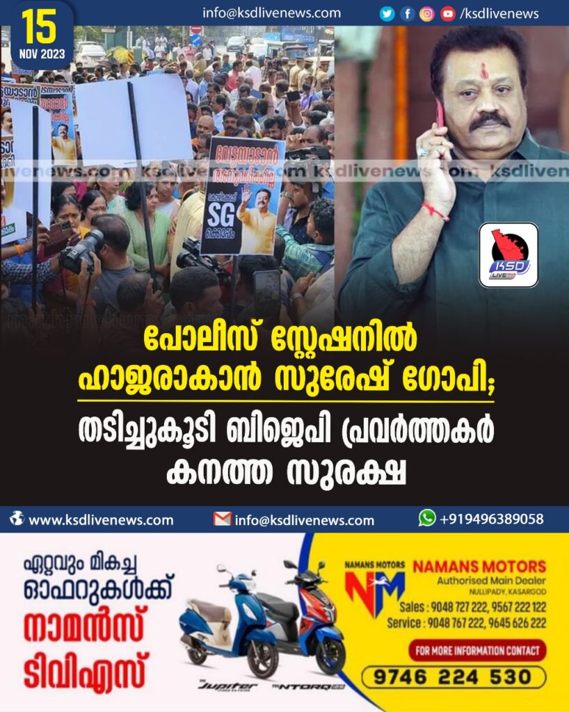 പോലീസ് സ്റ്റേഷനിൽ ഹാജരാകാൻ സുരേഷ് ഗോപി; തടിച്ചുകൂടി ബിജെപി പ്രവർത്തകർ, കനത്ത സുരക്ഷ | വീഡിയോ