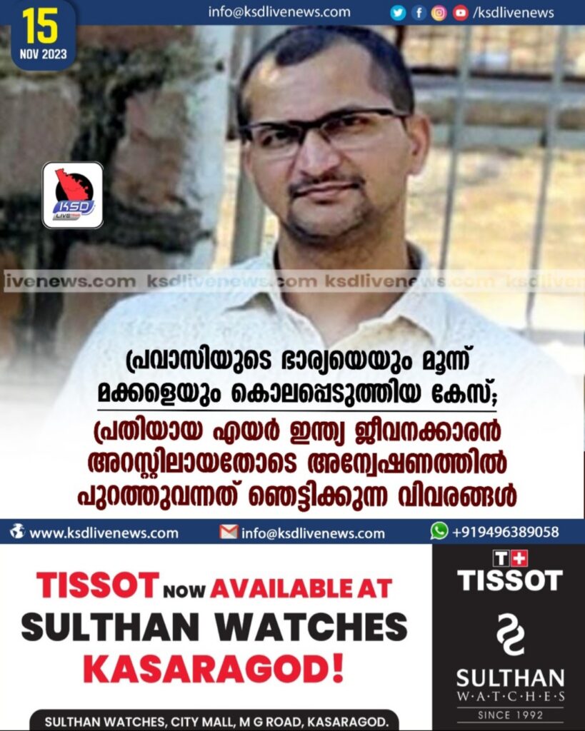 പ്രവാസിയുടെ ഭാര്യയെയും മൂന്ന് മക്കളെയും കൊലപ്പെടുത്തിയ കേസില് എയര് ഇന്ത്യ ജീവനക്കാരന് അറസ്റ്റില്; അന്വേഷണത്തില് പുറത്തുവന്നത് ഞെട്ടിക്കുന്ന വിവരങ്ങള്
